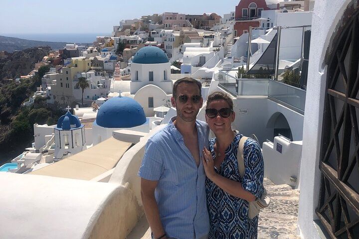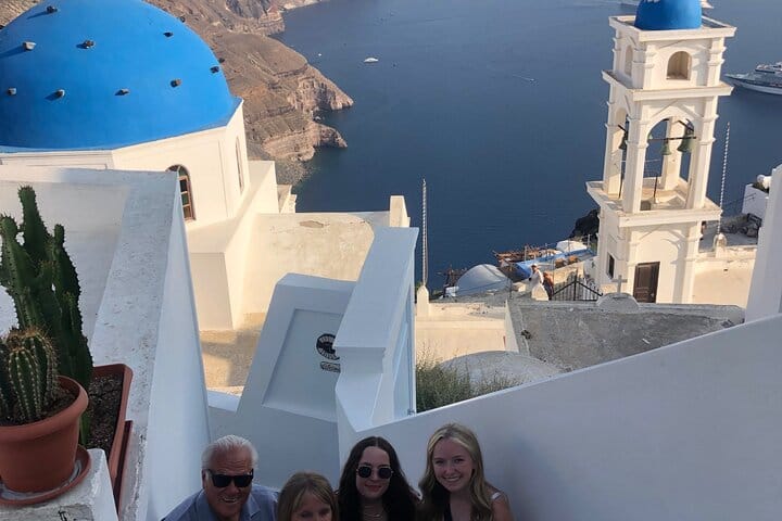Embark on an exclusive journey through Santorini's splendor with our private tour. From personalized pick-up to iconic Oia landmarks, including blue-domed churches and historic sites, every moment is a photo opportunity. Immerse yourself in Imerovigli's panoramic views, adorned with blue-domed Anastasis and Malese Churches. Firostefani's Three Bells Church adds the perfect finale.